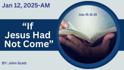 “If Jesus Had Not Come” by John Scott January 12, 2025 John Scott Video SHARE ON Twitter Facebook Buffer LinkedIn Pin It Leave a Reply Cancel replyYour email address will not be published. Required fields are marked *Comment * Name * Email * Website Δ Continue Reading “Gifts of Worship” by John Scott “International Disaster Relief Service” (I.D.E.S.) by Jeff Robinson