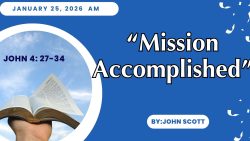“Mission Accomplished” by John Scott January 25, 2026 John Scott Video Scriptures John 4:27-34 SHARE ON Twitter Facebook Buffer LinkedIn Pin It Leave a Reply Cancel replyYour email address will not be published. Required fields are marked *Comment * Name * Email * Website Δ Continue Reading “International Disaster Relief Service” by Andrew Lit “Testing 1-2-3” by John Scott