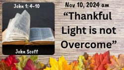 “Thankful Light is not Overcome” by John Scott November 10, 2024 John Scott Video SHARE ON Twitter Facebook Buffer LinkedIn Pin It Leave a Reply Cancel replyYour email address will not be published. Required fields are marked *Comment * Name * Email * Website Δ Continue Reading “God’s Established Authorities” by John Scott Thankful…The Word Became Flesh” by John Scott
